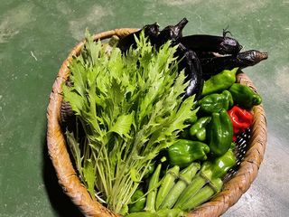 丸なす・長なす・隠れていますが米なす・オクラ・ピーマン(大量に取れます)