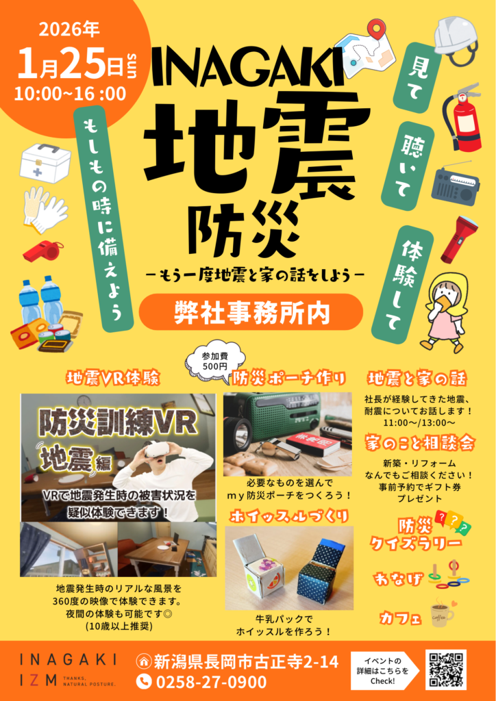 地震と家の話・家の相談会・防災訓練VR体験・・など