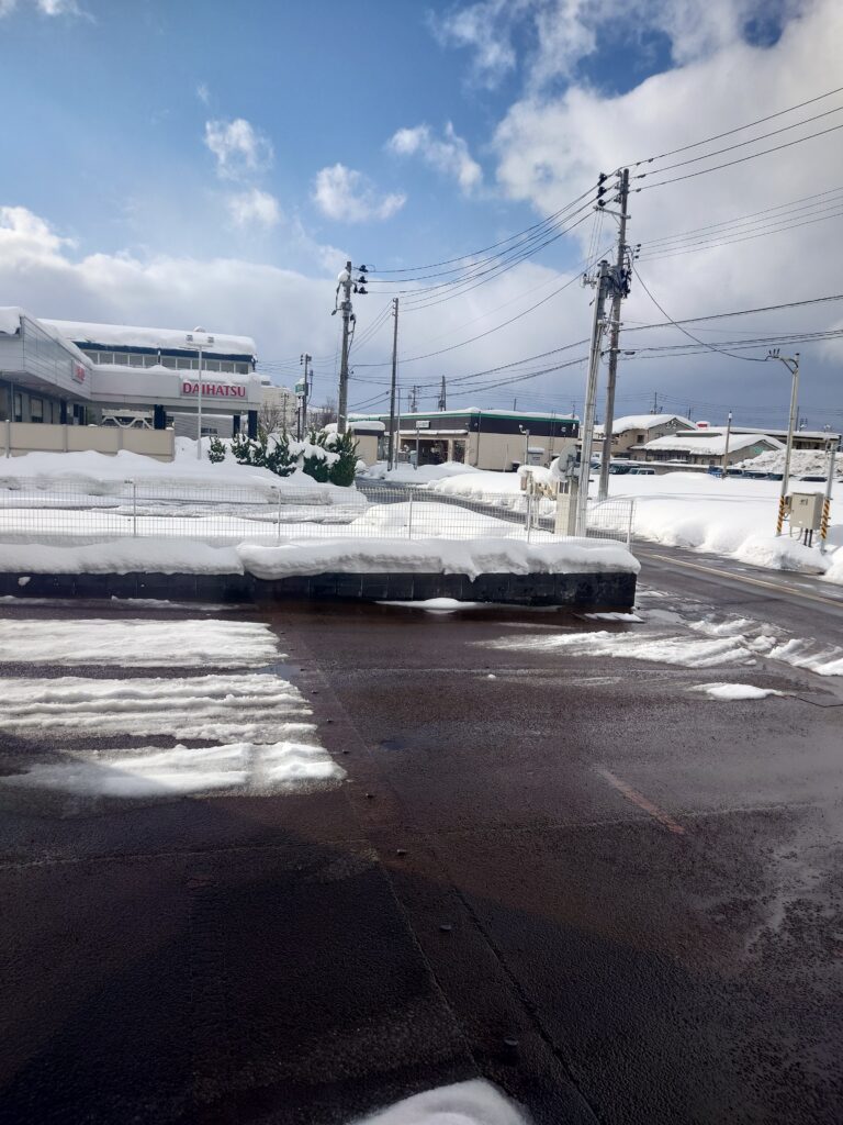 先週の事務所駐車場の様子です。毎朝除雪に追われてました。水も枯れて雪が解けません。