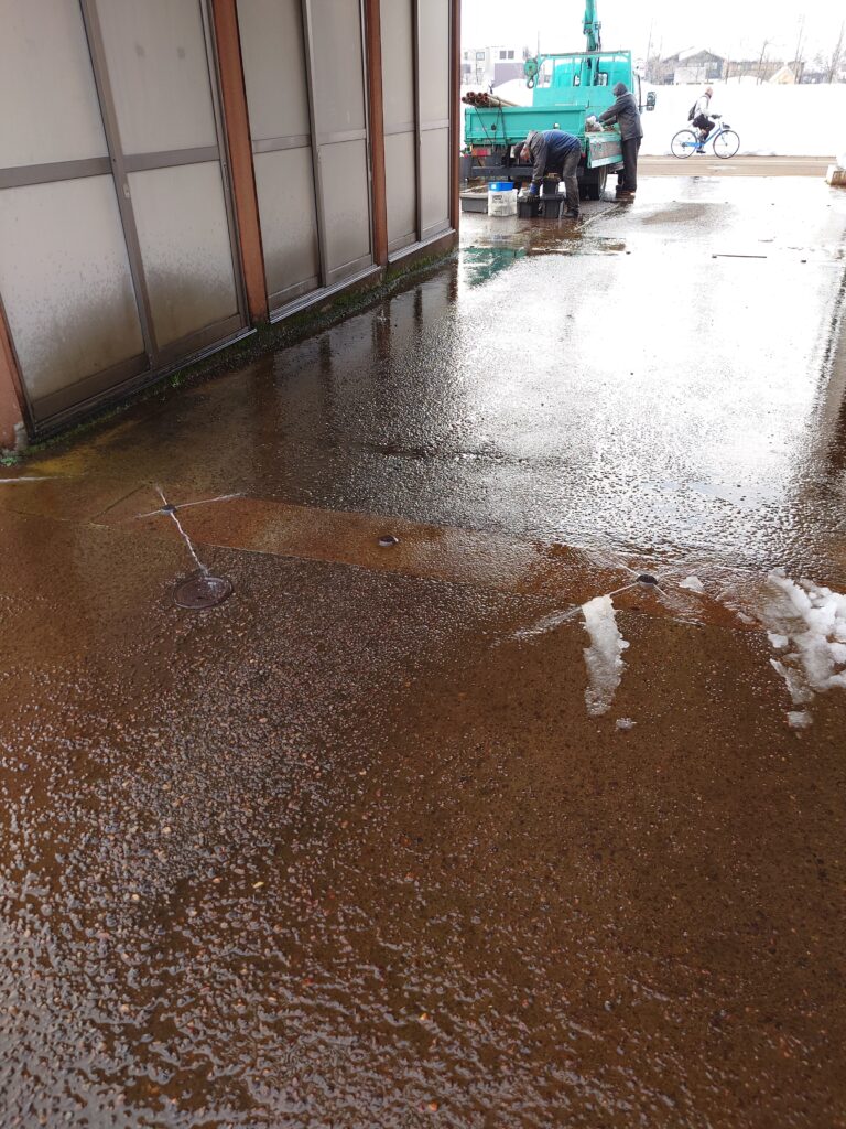 設備屋さんから来ていただきました。消雪パイプを見て貰いパイプの取替工事