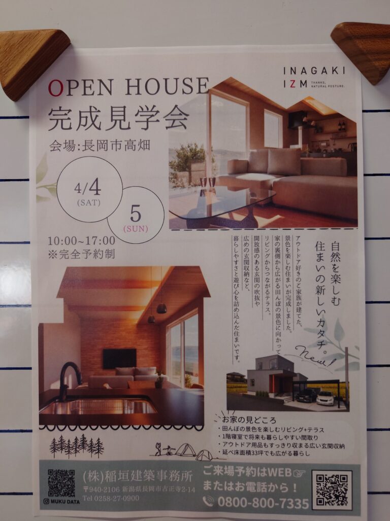 4月4日(土)4月5日(日)長岡市高畑にてopenHOUSEを開催致します。